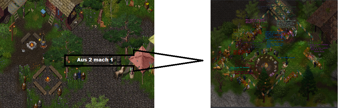 Diesen Platz wo der Markt stattgefunden hat, könnte man für solche Events sehr schön nutzen, deshalb meine Frage, könnte man dass Lagerfeuer dort lassen und dafür die zwei Lagerfeuer da wo die Holzwagen stehen entfernen oder auf eines reduzieren oder könnte man die beiden sogar zu einem großen zusammen führen und dafür das große Lagerfeuer auf dem Marktplatz wieder wegnehmen.