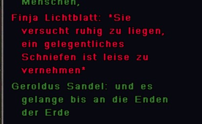 Mein Dank geht ebenfalls an die Mitspieler, die nicht nur während des Events, sondern auch zuvor schon lange, wirklich überzeugendes RP mit mir hatten. Schade, dass nicht alle von Euch dabei sein konnten und wollten, aber ich verstehe Eure Gründe.