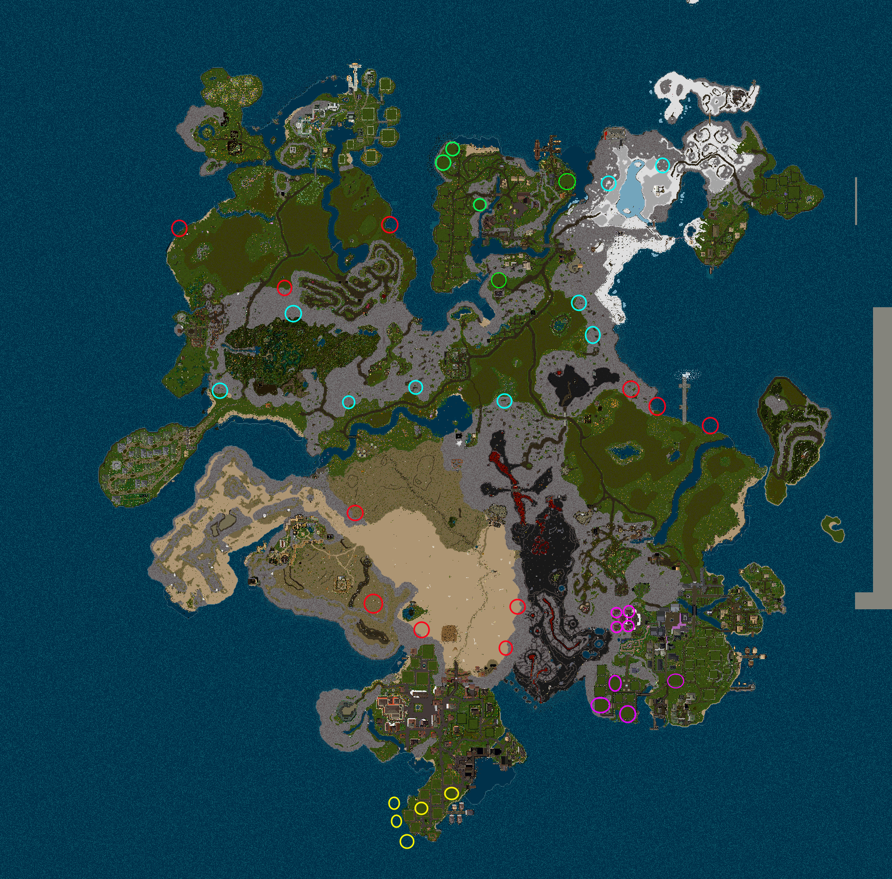 Zum einen gibt es auf der Map im mittleren Bereich freie Gildenplätze, die von einer Gilde beansprucht werden können. (Markierung türkiser Kreis○