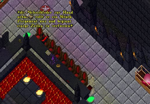 Die Füße wieder auf die Bank hochlegend rollte Kellnoz das Pergament aus und überflog die Zeilen. "Ein Treffen ... Wentzelslaus .....SoSo....." sprach er so zu sich selbst während er Zeile für Zeile überflog. "Nagut so will ich diesem armen Kerl ein Treffen gewähren, vielleicht schaffe ich es ja doch einen wahrlich richtigen Magus aus diesem Kerl zu machen!"