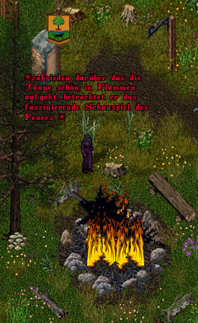 Bennen wurde beauftragt und der Wachmann ging auch schon ans Werk. Es dauerte nicht lange und der Baum befand sich in der Vertikale, und einige Augenblicke später, schaffte Bennen mit Hilfe von Golga die Tanne in die Flammen.