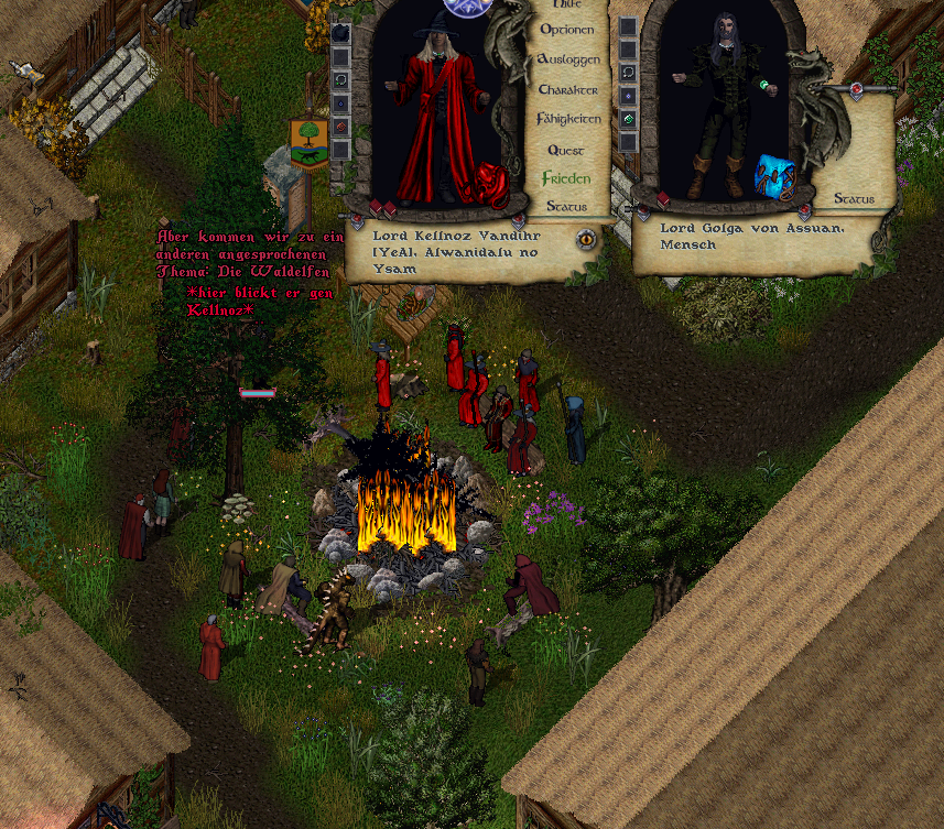 Einige der Dorfbewohner erschienen einige Gäste waren auch anwesend und wiederum andere schienen nur Schaulustige gewesen zu sein die das Wortgefecht zwischen den beiden Magiern; Golga und Kellnoz genossen. Auch wenn eine Abstimmung nicht direkt eindeutig war, so wurde dennoch das Ziel erreicht das in den nächsten Wochenläufen eine ordentliche Wahl mit vorher festgesetzten Regeln stattfinden kann. Auch sein Rivale Golga von Assuan wird bei jener Wahl nicht antreten, dies verkündete er vor allen Anwesenden am großen Feuer des Dorfes.  Ein erster Etappen-Sieg konnte somit für den Bundmagier verzeichnet werden.