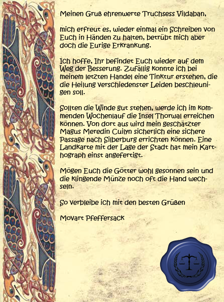 *Dann hält er Fenria das Schreiben hin, sollte Fenria auf das Siegel sehen, wird es ihr möglicherweise als das von Movart Pfeffersack bekannt vorkommen.