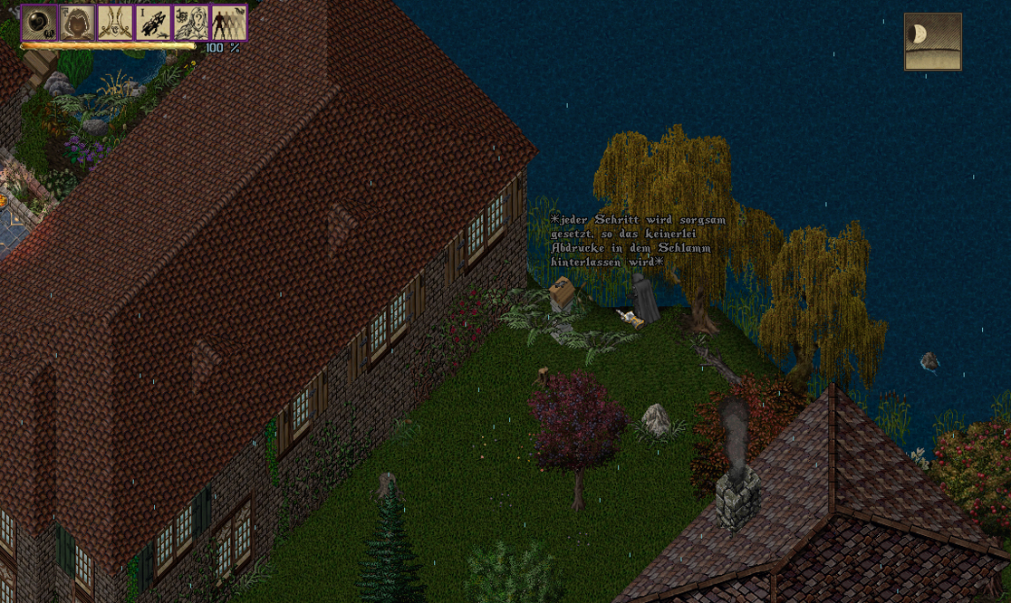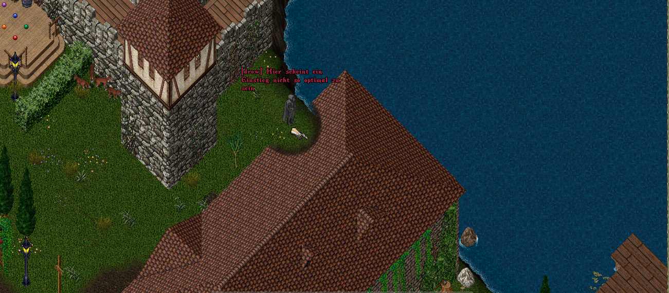 Eine leise Stimme, welche der Dietmars sehr ähnelte, war zu vernehmen: "Hier drüben, komm rasch!" Der Velguk Bhargos stand bereits hinter einer Ecke des Pavillions versteckt und wartete darauf, dass der Rivvin endlich an ihm vorbei ging. Otto kam mit gezielten Schritten herbei und blickte sich nach seinem Kameraden um. "Dietmar?! Pisst du wieder in den Teich?!", fragte er in die Dunkelheit. Sein Blick viel dann herab auf den Teich, in welchem Dietmar mit heruntergelassener Hose in seinen eigenem Blute trieb.