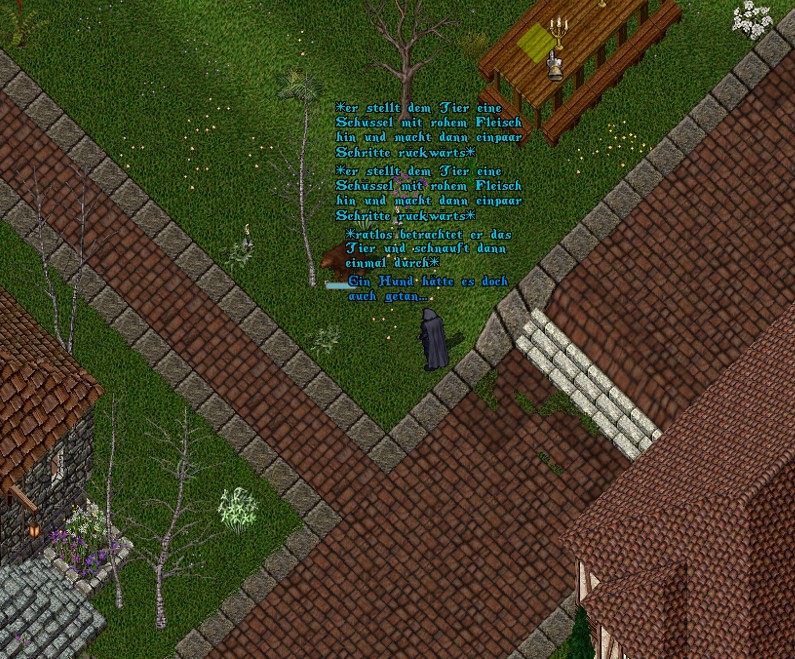 Nach Abschluss seiner Patrouille begab sich der junge Paladin wieder zu dem Bären, den er eigenhändig an einen Baum gebunden hatte. Er wusste immer noch nicht so recht, was er mit dem Tier machen sollte. Ganz gleich wie seltsam friedlich das Tier zu sein schien, war es immer noch ein Bär - ein wildes Tier, das im Stande wäre seine kleine Besitzerin in Stücke zu reissen. Es wäre nicht verantwortlich, ihr Blau zu übergeben und ebenso unverantwortlich wäre es, dass arme Tier hier weiter, an den Baum gekettet, stehen zu lassen.