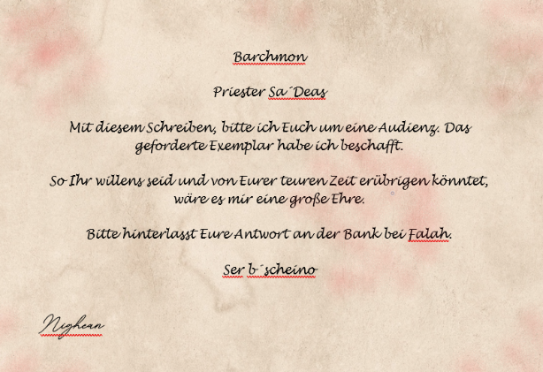 Sollte der Priester Sa´Deas den Brief erhalten und diesen lesen, bekommt er folgendes zu sehen.