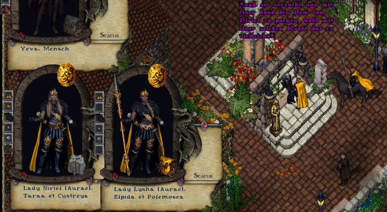 Zwischen der Kaiserin und mir folgte daraufhin eine hitzige Diskussion über Nekromantie, ihre Göttin, die Vernichtung von Verdorbenem Abschaum wie mir, meinem angeblichen Freund Ziron und weiteres. Da beidseitig Beleidigungen ausgesprochen worden, verzichte ich auf die Anklage nach § 26 Beleidigung.