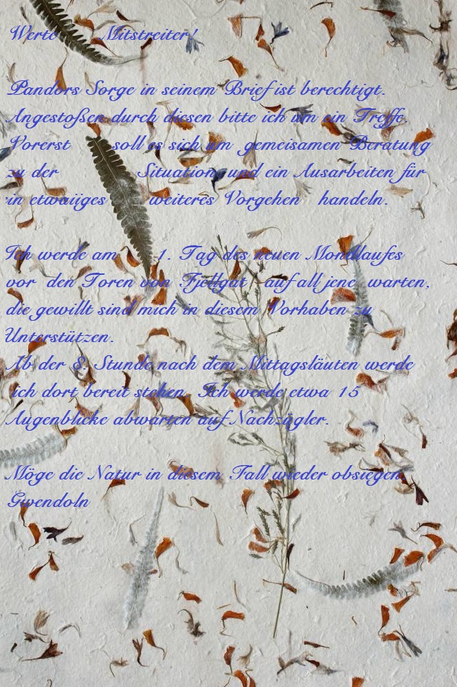 Briefe erreichen Golga, Livius, Sorscha, die Mitgleider des Druidenzirkels und Druiden des Landes.