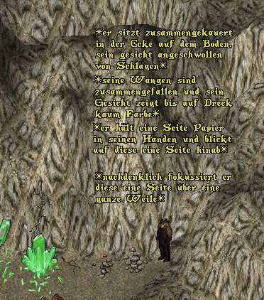 [OOC: Es liegt IG kein Buch/Pergament in dem Dungeon. Wer als erstes darauf bezugnehmend postet und ein Screenshot aus der Alten Mine mit dem passenden Emote hinzufügt, wird den Zettel gefunden haben.]
