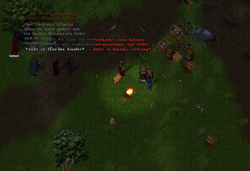 OLORGHIZ HAAAAAAAAAAAAALT!“ grunzt der Häuptling laut, als er zwei Menschlinge erblickte die gerade dabei waren Oger den gar aus zu machen. Der Häuptling machte keine Anstalten und stapfte direkt auf die Beiden zu: „Liba Groukh ferraten was hia sukän“