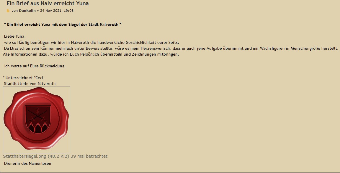 Ein Brief an Yuna wurde so dann verfasst.