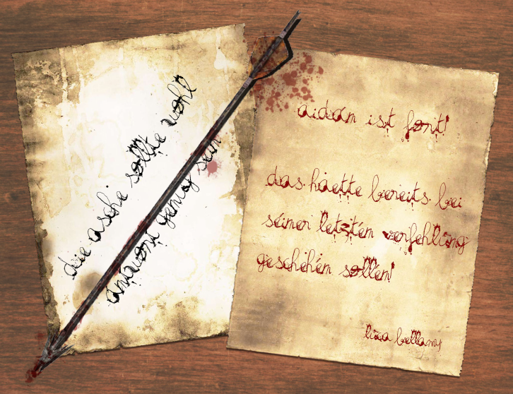 Etwas Pergament und eine Schreibfeder zur Hand nehmend, begann sie mit dem übrigen Blut ihres Opfers eine kurze Nachricht zu notieren,