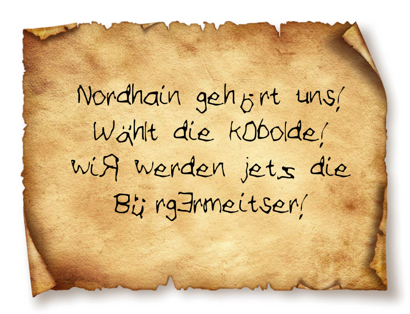 Zur Wahl und wahlberechtigt sind alle Nordhainer, gleich welcher Rasse, Hautfarbe, Gilden – Fraktions/ oder Glaubensangehörigkeit aufstellen lassen,