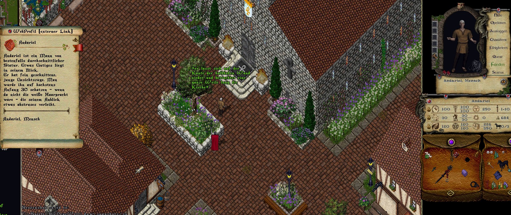 Unser armer Kirchenheld Gabriel schnappte freilich ebenfalls eines dieser Gerüchte auf und er kam nicht umhin sich zu fragen, ob nun auch andere derlei Visionen hatten. Vielleicht... vielleicht sollte er doch mal mit dieser frömmigen Priesterin sprechen, oder dieser netten Paladina? Doch würden die beiden ihm, einem armen Landstreicher überhaupt Gehör schenken? Seit ein paar Tagen mied Gabriel den Dom. Viel zu groß war die Furcht, dass er doch verjagt werden würde. Aber die Visionen und Träume plagten ihn immer mehr.