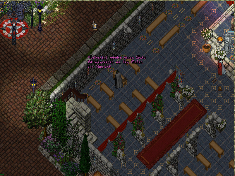 Beim Näherkommen erst, fällt ihr auch ein Bettler auf, ein scheinbar verirrter auf seinen Pfaden, doch tritt er die Flucht an als die Priesterin daher schreitet, nicht ohne stammelnd angemessene Worte zu wählen. Ein weiteres Zeugnis wie sehr die Stadt den Trost und die Hoffnung der Zuversicht benötigt, die des Herren heiligen Lichtes bringt.