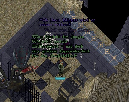„Alles läuft nach Plan…“ sprach er zu sich selbst und verstaute das Schreiben in seiner Tasche. Sogleich machte er sich zur Festung des Qu'ellar Filifar auf, um die neue "Besucherin" in der Folterkammer zu begutachten.