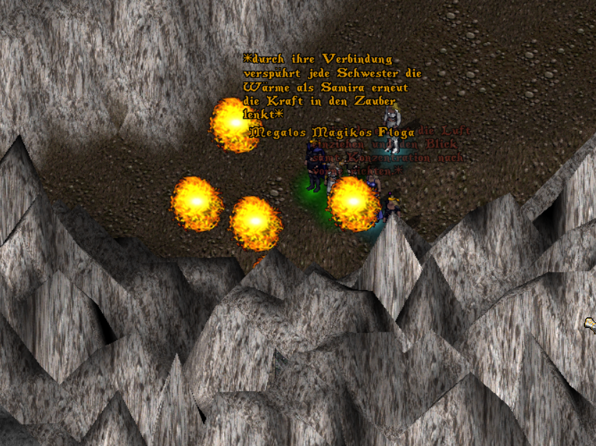 Vor dem Zugang bündelte die Megala Ierea, unter mithilfe ihrer Schwestern, ihre Kraft und ließ die Felsen mit einer mächtigen Explosion zersplittern,