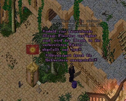 Unermüdlich arbeiteten Diana und Ihre Helferinnen daran. Immer wieder wurden einige Flaschen herausgetragen und behutsam in ein Fass abgefüllt. Immer wenn ein Fass fertig war, wurde es durch eine Schwester abgeholt und zum Versammlungsplatz nahe der Schmiede gebracht.