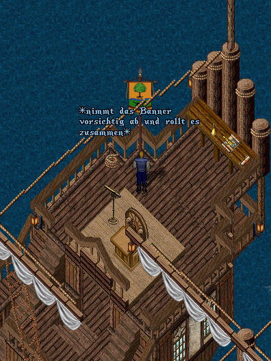 Nachdem der ganze Unrat verbrannt war, nahm er vorsichtig das Banner ab, rollte es zusammen und brachte es auf die Prinzessin, vielleicht durfte es dort in der Kajüte aufgestellt werden. Ansonsten würde es einen ehrenplatz in der neuen Heimat finden.