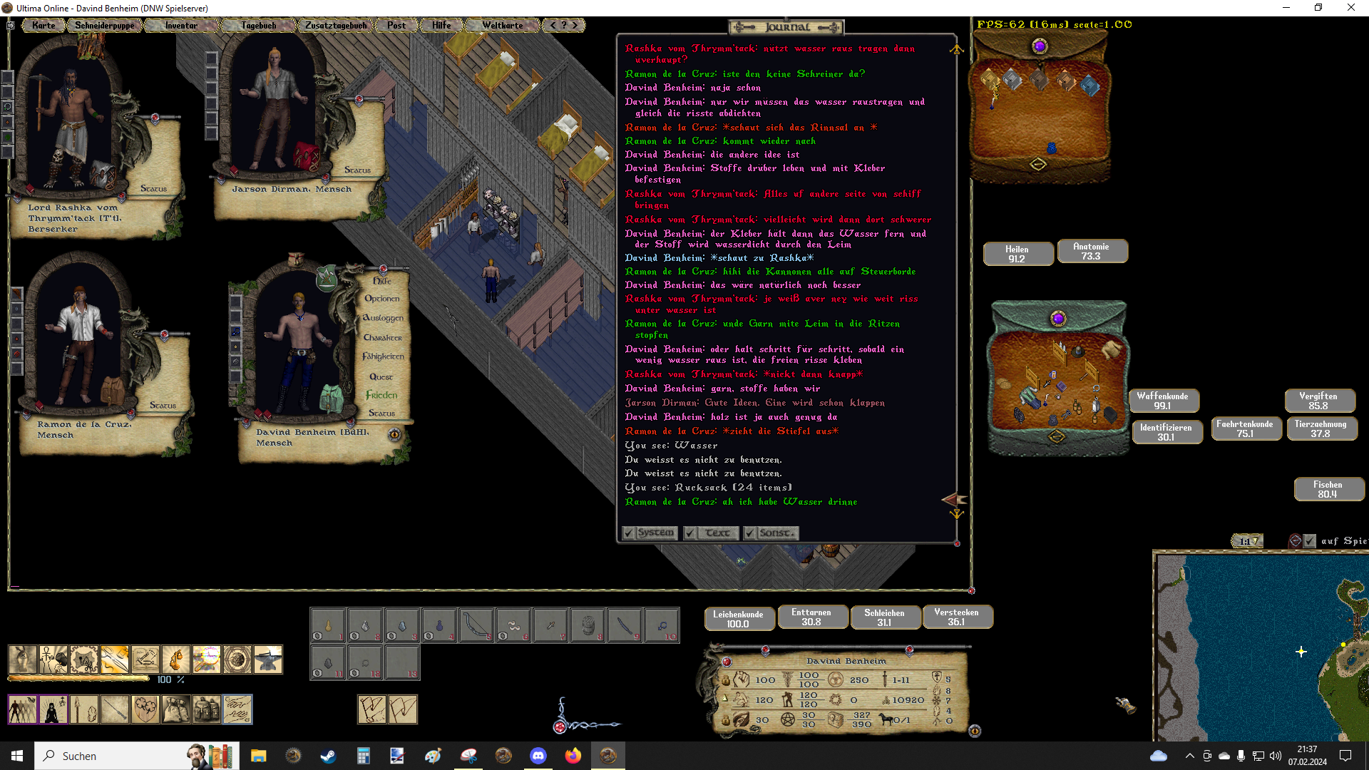 Heute galt es den Schiffsbauch von eingedrungenen Wasser zu befreien.  Skadi schöpfte Eimer um Eimer und doch schien es, als wolle das Wasser nicht weichen. Dann endlich, Stunden später sah man erste Erfolge.