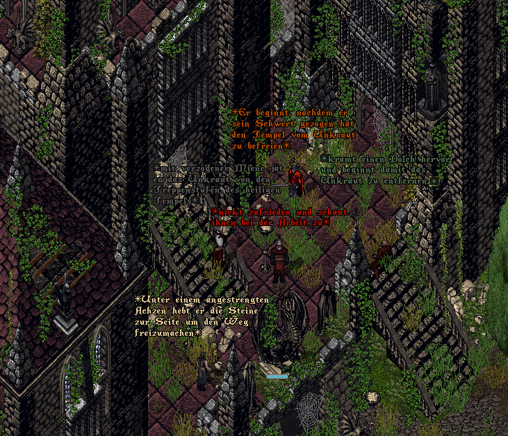 Auch die Wächter und Priester der Dunklen Bruderschaft waren sich nicht zu schade, der Verunreinigung des alten Tempels entgegenzutreten und machen sich alsbald ans Werk ihrer neuen, heiligen Stätte zu neuem Glanz zu verhelfen.