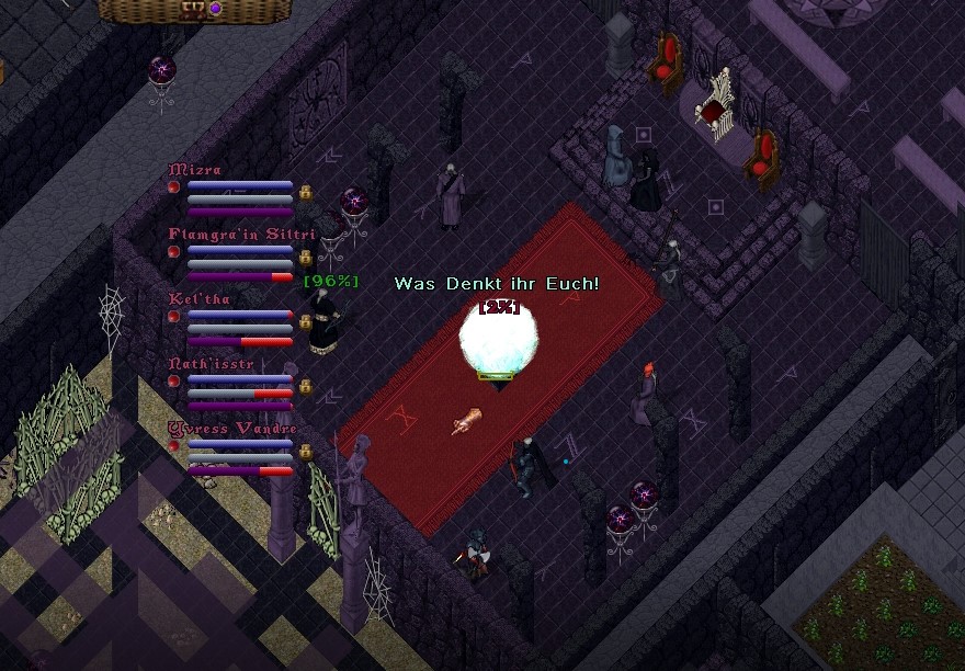 Sollte das der Schlüssel zu Belfaz Macht sein? Yvress musste sicher gehen und befahl dem Trupp, auch die anderen Räume an den vier Ecken der Festung aufzusuchen. Auch am nördlichen Ende fanden sie einen roten Kristall vor und wurden wieder von dem Augenwesen überprüft. Sie verbargen sich und es konnte sie nicht entdecken, doch es geschah etwas anderes:
