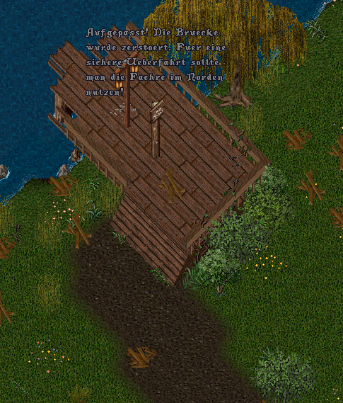 Die verschiedenen Helfer samt Markus und Fenria machten sich sogleich auf zurück zur eigentlichen Baustelle. Während die Paladine die neugierigen Bürger beruhigten kümmerte sich Markus noch um passende Schilder für beide Seiten der ehemaligen Brücke.