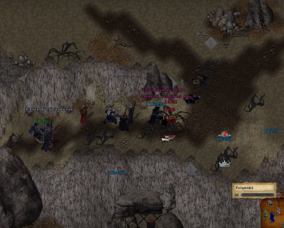 Ich stiess auf eine Gruppe von fast einem Dutzend Oberweltlern, welche die Dämonen beseitigten, die Sold'Orbb belagern. Sie wagten es Erklärungen zu fordern, doch die einzige Antwort war die Erlaubnis mit der Ausdünnung der Dämonen fortzufahren. Ich habe sie eine Weile beobachtet, ob sie den erteilten Auftrag auch ausführen, wenn sie schon in unser Reich eindringen.