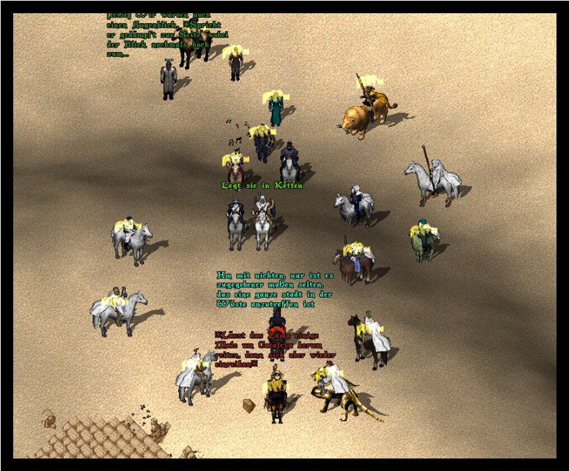 Die ersten Schreie zerrissen die Stille wie Messer. Schatten im Schleier der Wüstenhitze. Reiter in Weißer-Goldener Rüstung, Gesichter verborgen hinter maskenhaften Visieren.
