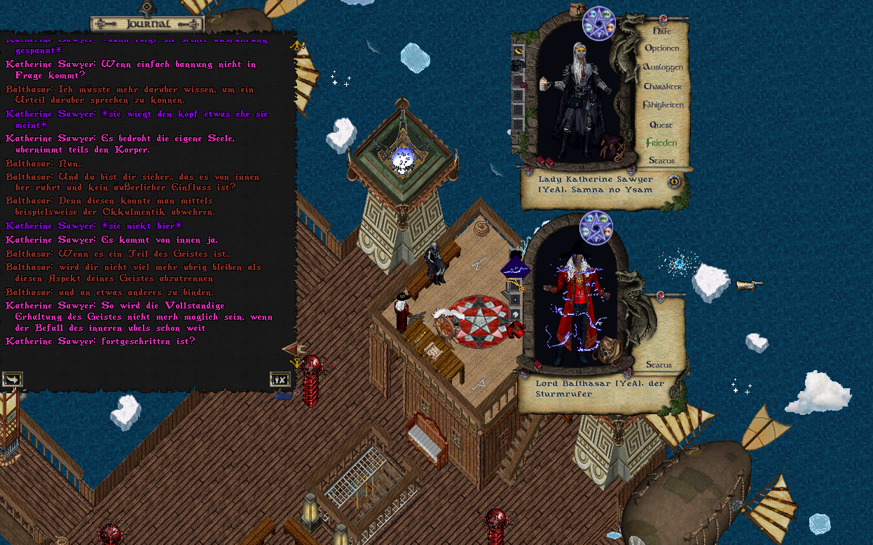 Nachdem der Ritus abgeschlossen war verzogen sich nach und nach die einzelnen Persönlichkeiten, bis sie sich mit dem Sturmrufer alleine auf Oberdeck befand.