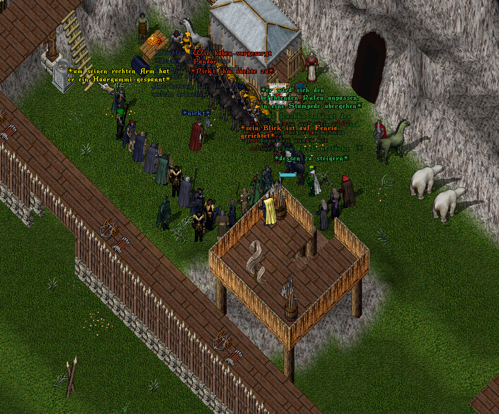 Vor Grimlas Hain türmten sich die Leichen der Eiselfen die wohl erneut das Dorf angriffen. Eine Fehde und Streit der viele Monde ruhte schien wieder ausgebrochen. Die Herrschaft über das lebensfreundlichste Gebiet im Norden. Das Volk der Eiselfen war seit Jahrzehnten im Rückzugskampf und Hir'da wusste das jedes Wesen in Not von Hunger und Heim zu wilden Tieren werden kann.