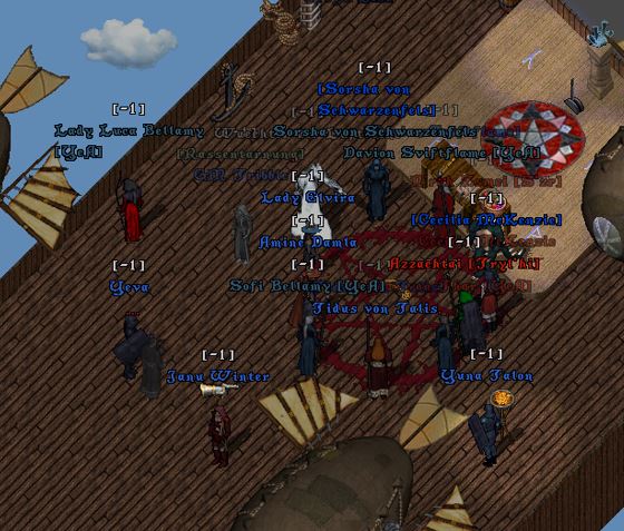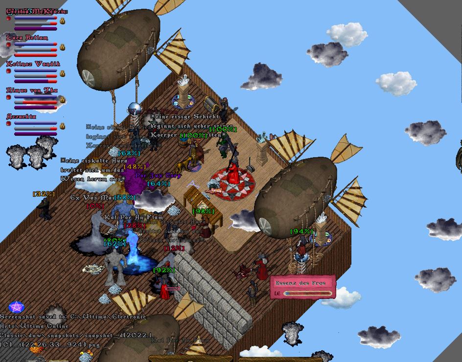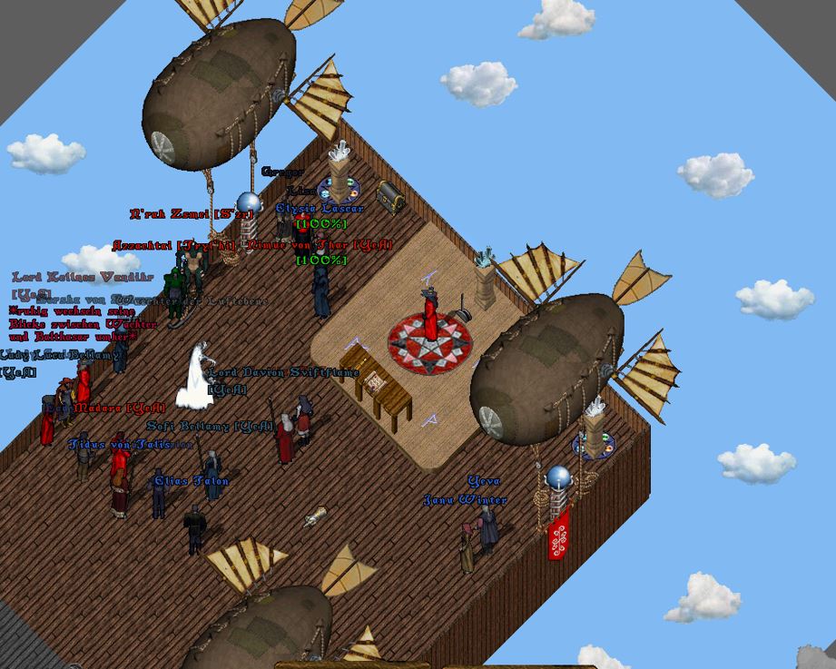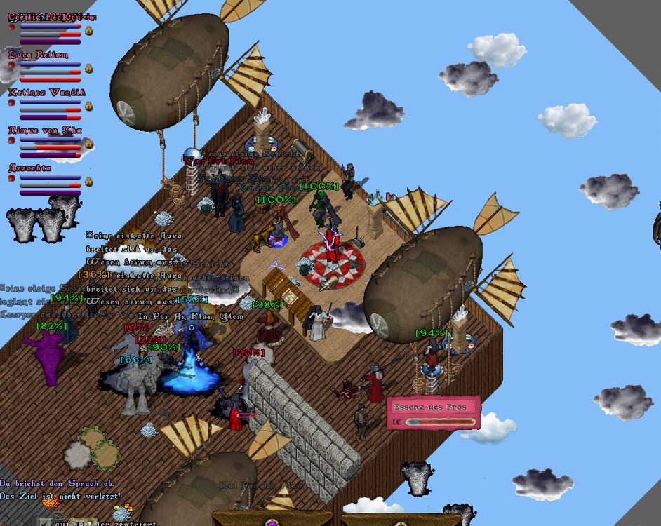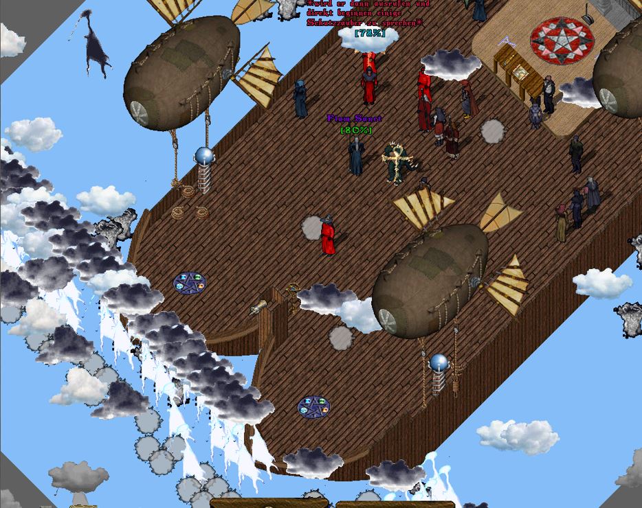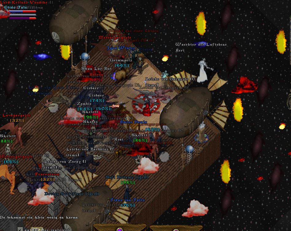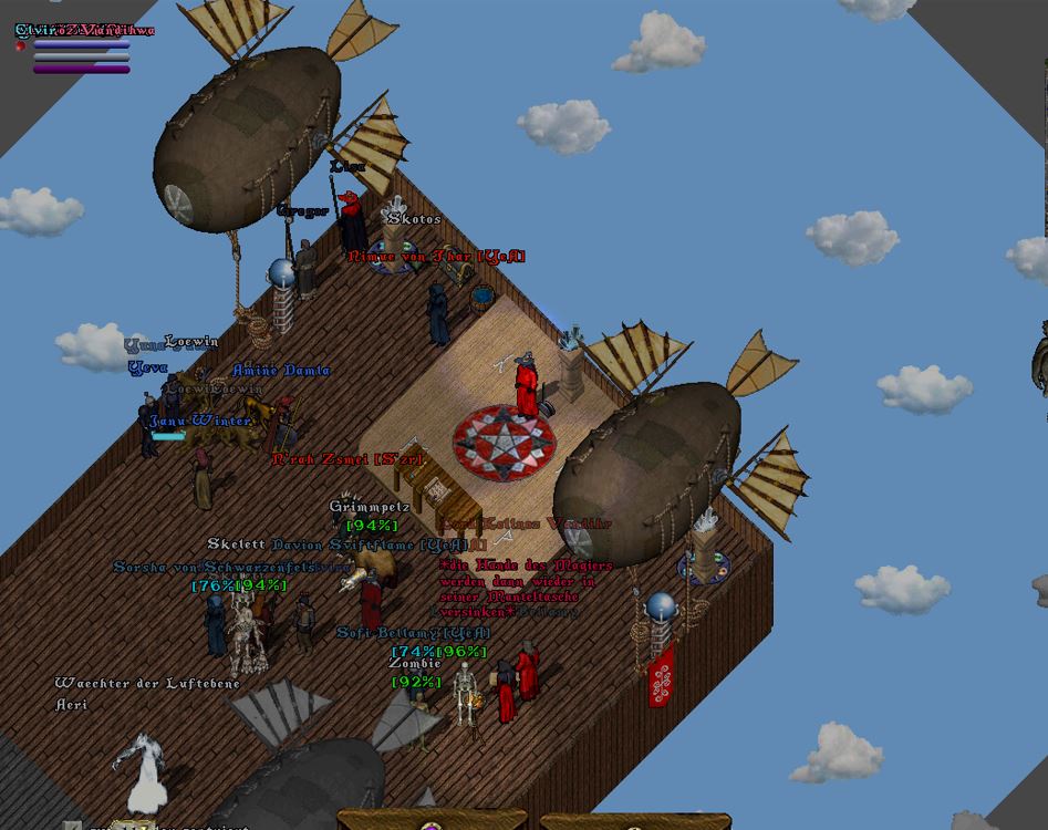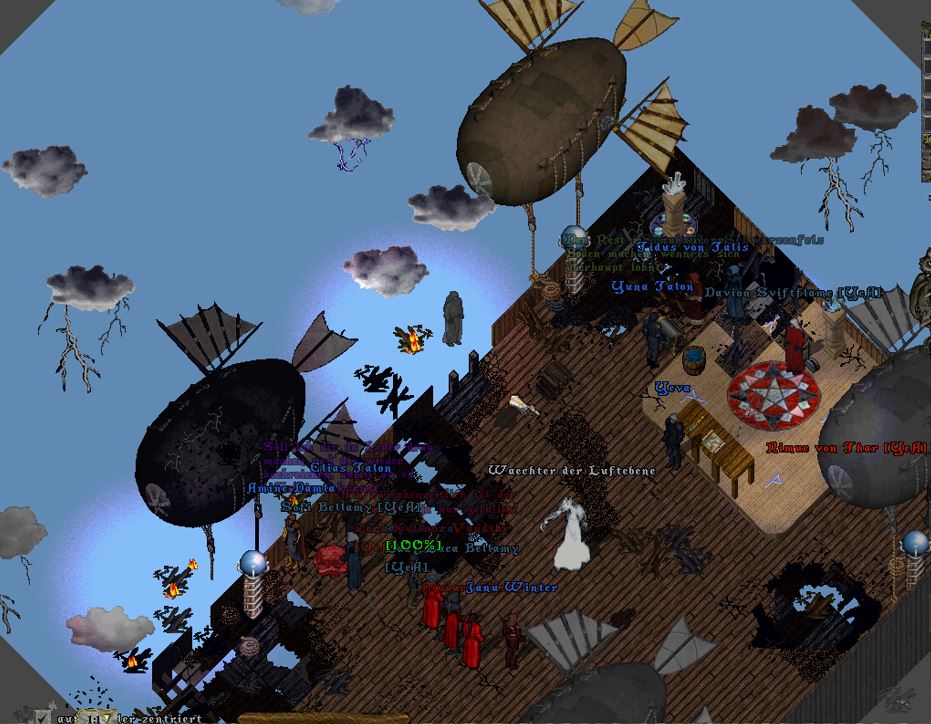Der Ebenenwächter gesellte sich schließlich auch wieder hinzu und griff ein, als der Buckelige im Begriff war, einen Feuerball auf den gegenüberliegenden Zeppelin abzuschießen.