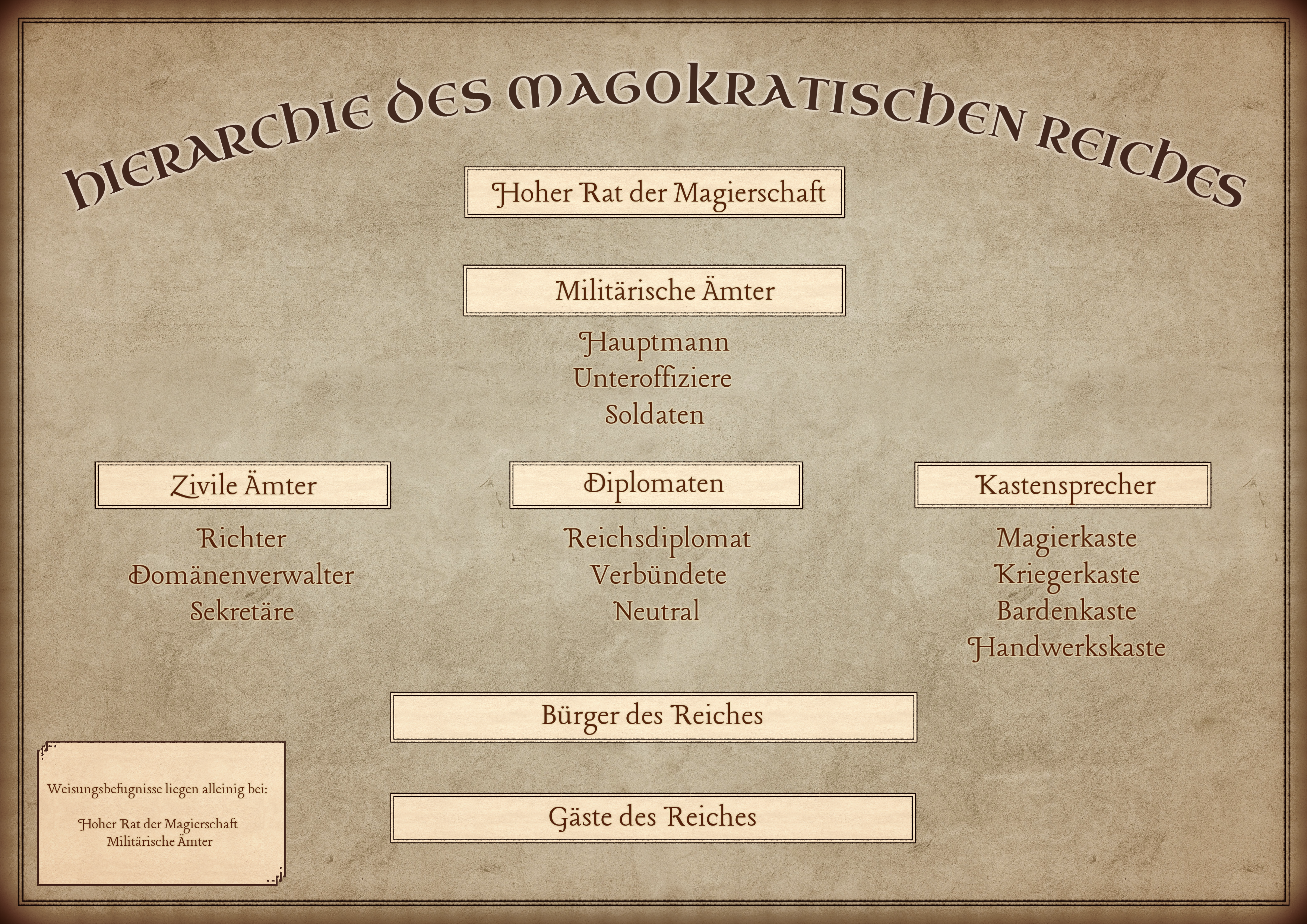Mir ist bewusst, dass das Bürgertum Ansilons sich natürlich nicht nur durch die Magierkaste definiert. Es gibt viele Mitglieder welcher der Handwerkerkaste angehören, der Kriegerschaft entstammen oder aber auch im Bauerntum fußen.