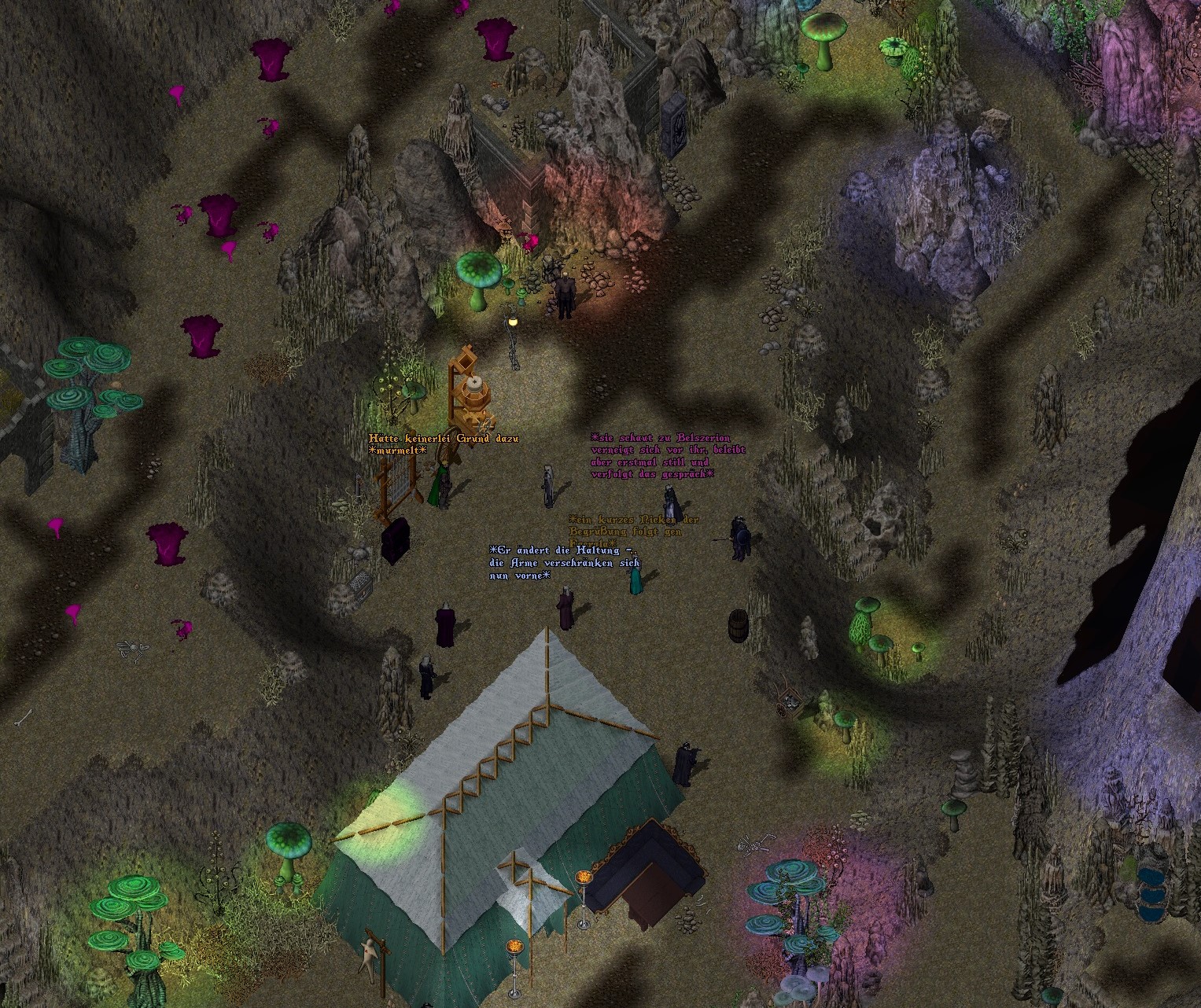 Aanatus pfiff durch die Zähne. Dass er vorher bei Dunkelelfen in deren Ansiedelung stehen würde, bevor man ihn in die Amazonenoase ließ, hatte er nicht gedacht. Ein wundersamer Ort. Seltsames Flackern, seltsame Höhlenvegetation…viel Zeit hatte er jedoch nicht umzusehen, denn kurz und knapp wurde ihm befohlen, das gesamte Unterreich zu einer Karte zu beginnen. Wann? Jetzt!