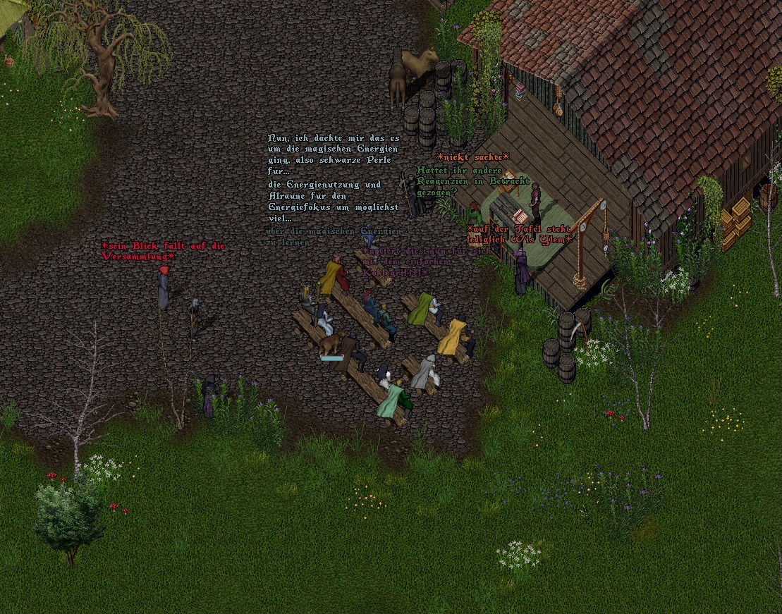 Im Gegensatz zur Reagenzienkunde, der letzten Lehreinheit, welcher Aanatus beiwohnen durfte, war diemal das Thema um einiges komplexer. Schon früh in der Vorlesung musste sich Aanatus eingestehen, dass er sich zwar mit Reagenzien auskannte, aber all diese Worte der Macht...meine Güte...die waren im fremd und oft konnte er inhaltlich nicht folgen, so sehr er sich auch bemühte. Glücklicherweise erklärten Ruweena und Gwendolyn immer mal wieder Details, welche für Nichtmagiekundige für das Verständnis essentiel waren. Doch auch damit tat er sich schwer, den Diskussionen der Magiekundigen zu folgen und umso froher war er, als endlich das Thema auf Reagenzien fiel, als die Wirkung von Feuerzaubern besprochen wurde. Schwefelasche dafür erschien auch ihm aus alchemistischer Sicht logisch und da er das alchemistische Gegenteil - Vulkanasche - in seiner Wirkung kannte, traute er sich zu fragen, ob diese beiden Reagenzien in der arkanen Magie kombinierbar seien und wenn ja, was sie bewirken würden. So erfuhr er, dass Vulkanasche keine Verwendung in der arkanen Magie hatte, was ihn erstaunte. Eifrig machte sich Aanatus Notizen. Irgendwann kam es zu einer hitzigen Grundsatzdebatte zwischen den Vortragenden und Katherine. Aanatus wusste natürlich über die Spannungen Bescheid, aber hinter all dem erkannte er auch das, was ihn sein Meister lehrte: Unterschiedliche Sichtweisen, die es nun mal überall gab. Die entweder trennen oder zu etwas größerem Neuen führen könnten. In dieser Debatte schien viel Trennendes zu liegen, jedoch erkannte man - zumindest als nichtwissender Außenstehender - auch Aspekte einer interessanten Inhaltsdiskussion. Dies gab Aanatus auch zu bedenken, als er ein zweites Mal aufzeigte und die scharfe Diskussion diplomatisch als "interessant und wissensstiftend" bewertete, allerdings vor versammelten Publikum hinzufügte, dass er nicht verstehe, wieso so viele kluge Menschen durcheinander reden, anstatt geordnet nach Handzeichen eine übersichtliche Diskussion zu führen. Aanatus schwächte den Inhalt seiner Worte mit einem schiefen Grinsen ab, blickte nur kurz in die Runde und war erleichtert, keine erneute Diskussion ausgelöst zu haben. So endete die Vorlesung in aller Ruhe und Aanatus konnte sich vor seinem Treffen mit Ruweena noch einmal dem Bild widmen, welches er von dem Publikum gezeichnet hatte.