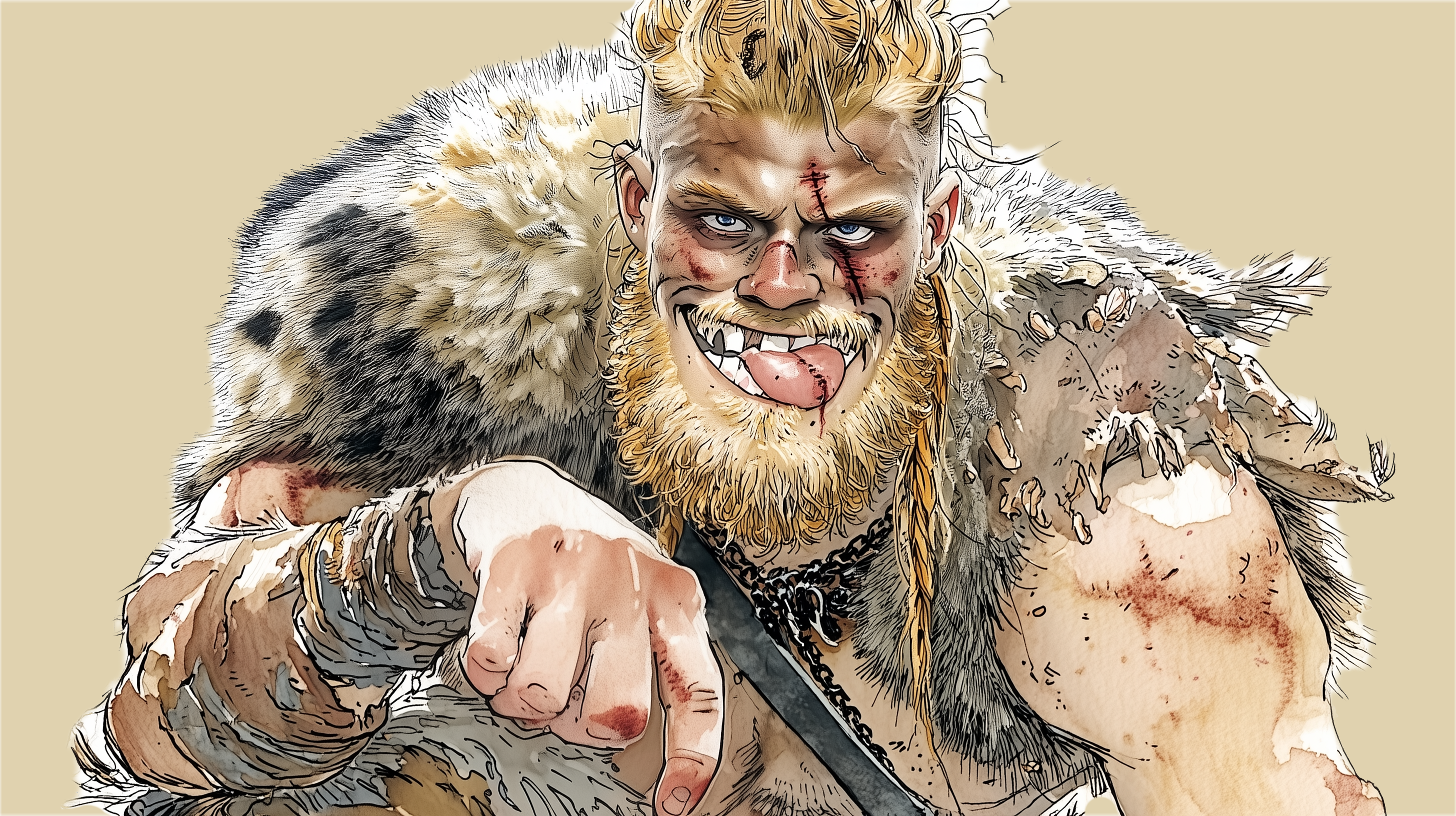 Mehrfach, so hört man voller Entsetzen, wurde er bereits aus Nebelhafen vertrieben, da er in rasender Tollheit Schuldige und Unschuldige gleichermaßen anfiel. Dabei kämpft er nicht als edler Recke, sondern vielmehr wie ein tollwütiges Tier, das jegliche Grenzen der Ehre niemals kannte. Welch schmerzliche Kunde erreicht uns, dass er sich selbst in ehrenvolle Zweikämpfe mischt, dass er das ehrwürdige Langhaus von Fjellgatt verwüstete und in einen Bärenstall verwandelte und selbst den geduldigsten Jothar allentags zur Weißglut treibt?