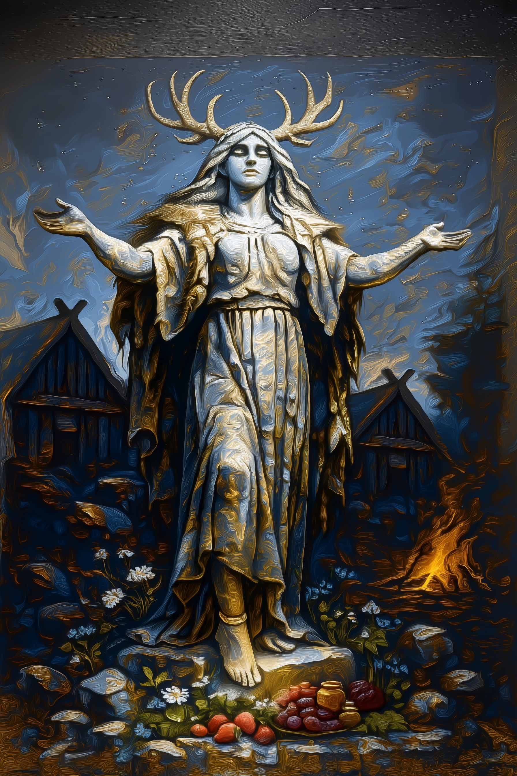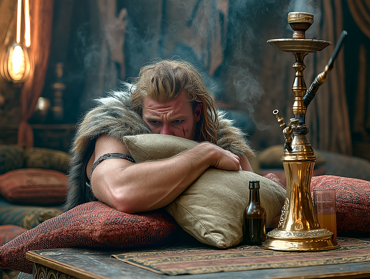 „Ach, du Maßloser!", hauchte Freyja, ihre grünen Augenlichter funkelten wie Birkenblätter in der Frühlingssonne, während ihre Wangen rosa erglühten, den ersten Strahlen der Dämmerung auf mit jungfräulichem Schnee bedeckten Gipfeln gleich. „Du übertreibst wie ein... wie ein Skalde im Liebesrausch!" – in der Tat! Es gab überhaupt nicht genügend Adjektive, Kenningar und verstolperte Metaphern, um diesen Moment zu beschreiben, also musste die Zeit ihren Atem anhalten! Die Feuerflammen ehrfürchtig flackern. Selbst die Holzbalken der umstehenden Langhäuser ächzten – voller Erwartung auf das unweigerlich Kommende.