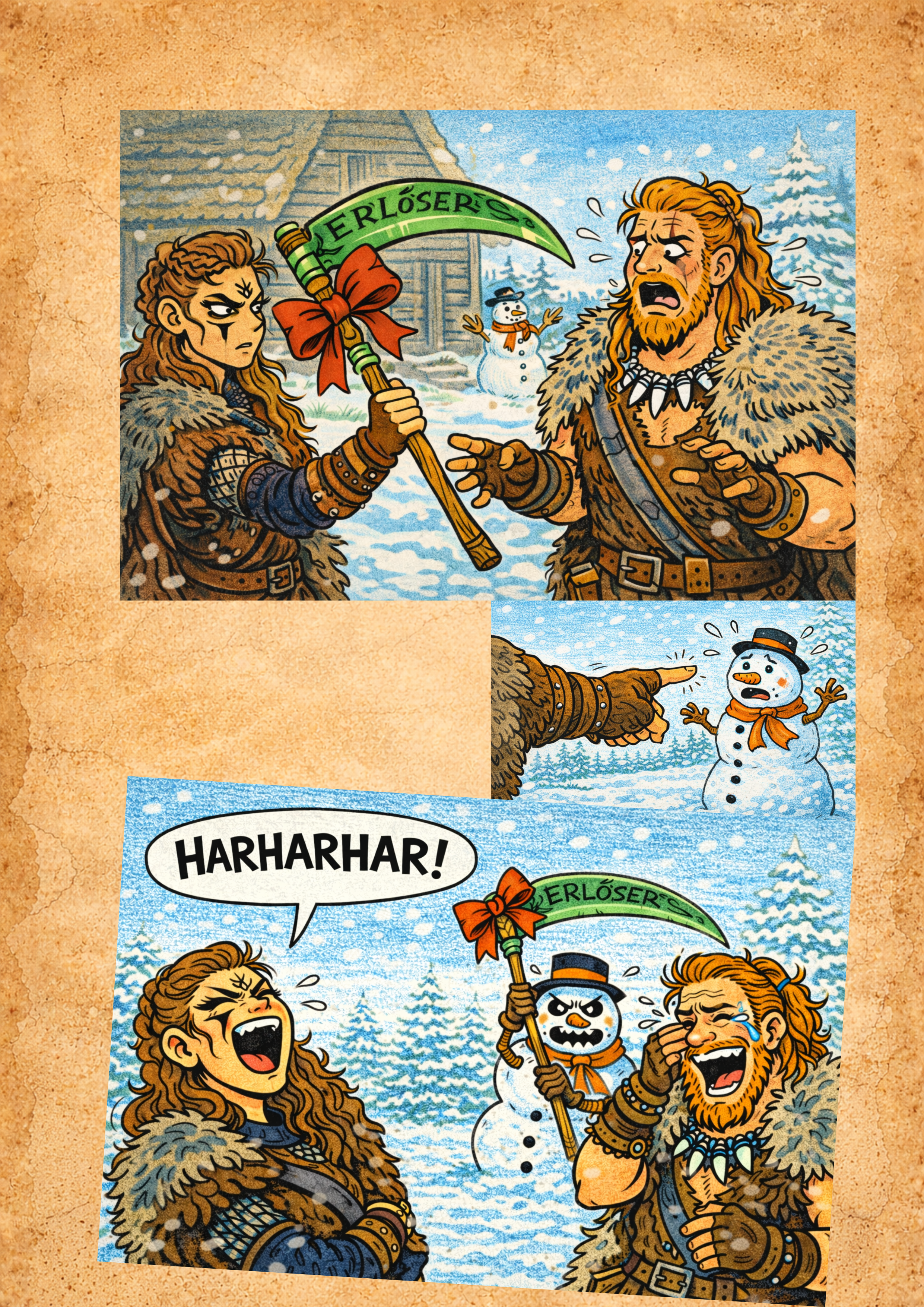 Andere Fremde im Norden grollte er neuerdings an, verwies sie auf das Grab, oder lud sie ein, mit ihm Drachen im Jammerfjord zu jagen. So konnte er sehen, wie gefährlich sie wirklich waren. Manchmal richtete er dabei die Mäuler der zornigen Eisdrachen mit ihrem Frostodem absichtlich auf die Fremden, um zu sehen, wie behände sie davonsprangen, die Wichtel. Wie etwa jene
