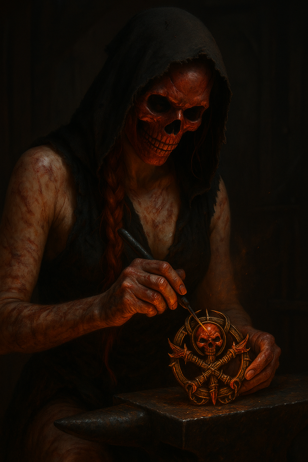 In der Mitte schlug sie mit sieben Hammerschlägen den Schädel ein, geformt aus dem verkohlten Brustbein eines einstigen Balrog, getränkt in Blut und Öl,