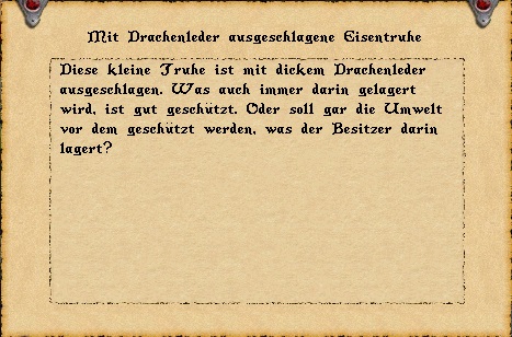 Die aus Eisen gebaute Kiste war stabil und bot ausreichen Platz für den Splitter im inneren. Mit Stoff wurde eine Art Nest vorgeformt und dauerhaft befestigt, dann die Kiste fein säuberlich erst von innen wie danach von außen mit Drachenleder ausgekleidet.