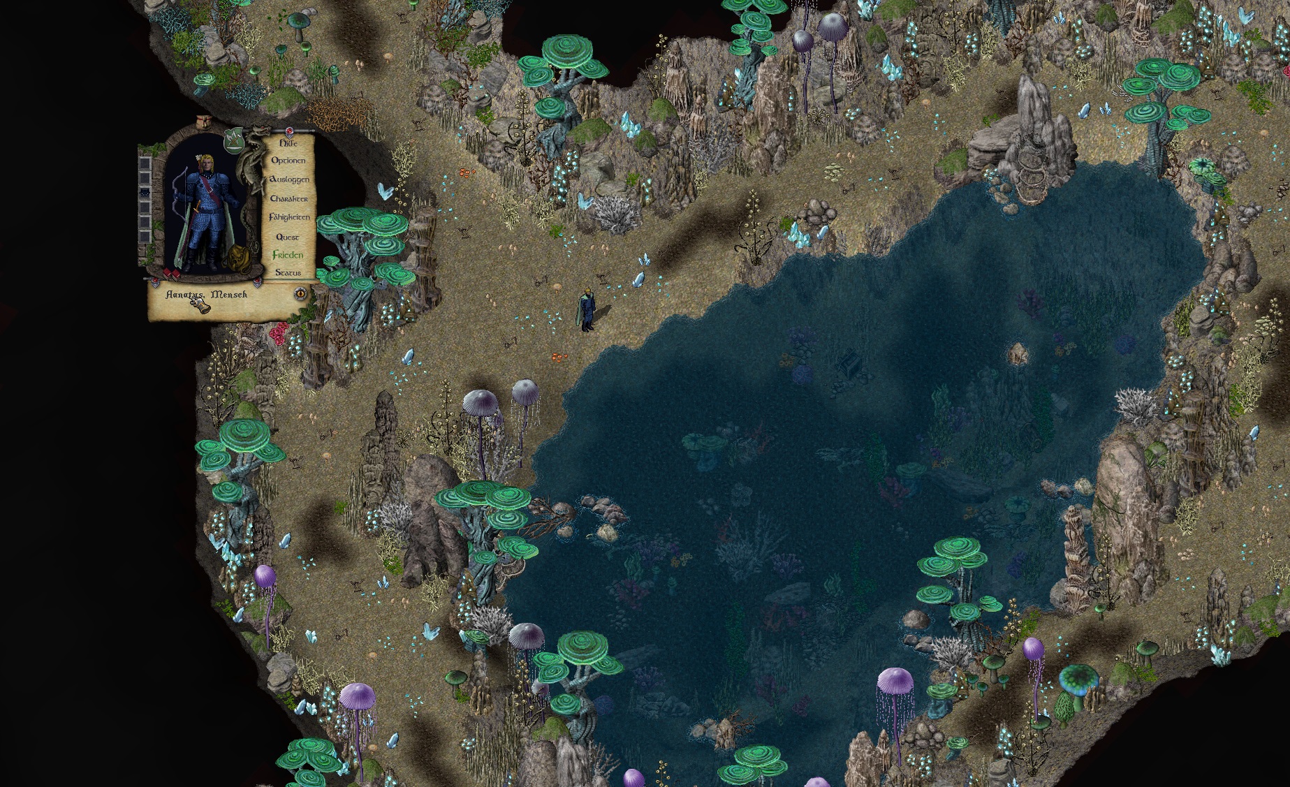 Nachdem Aanatus von Belszerion das kleine, aber feine, Schreiben in die Hand bekommen hatte, welches ihm Zutritt in das Unterreich sicherte und demnach offiziell machte, was seit seiner Kartographierung der dunklen Gänge im gesprochenen Wort, namentlich durch die Ilharess Mizrae, Bestand hatte, konnte er endlich in Ruhe einer Sache nachgehen, die ihm erst vor kurzem, als er der jungen Barbarin Yura ein paar Molchaugen zeigte, aufgefallen war. Da war nämlich etwas im unterirdischen See, was ihm trotz vieler Male des Vorbeigehens erst damals aufgefallen war. Vielleicht, weil der Wasserspiegel zur Zeit etwas niedriger Stand? Oder einfach nur Glück, dass keine krause Wellenbildung den Blick verwehrte? Wer wusste das schon...sein Ziel war jedoch klar.