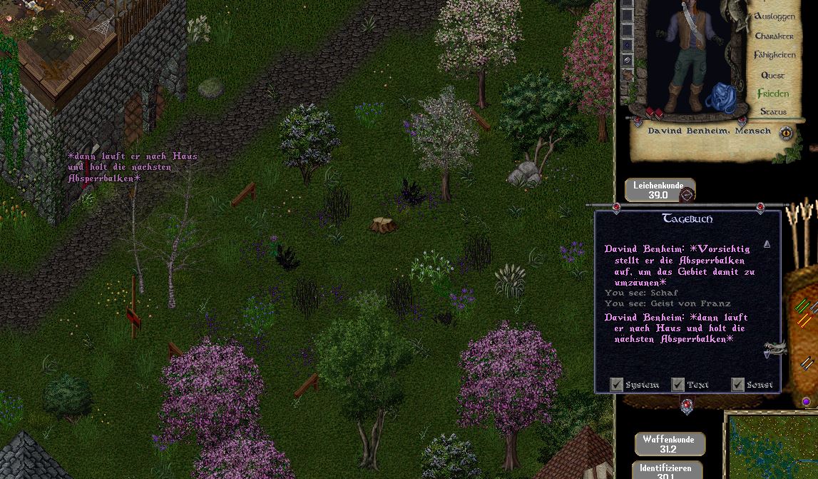 Heute nahm er sich dann ein paar Sachen und lud sie auf ein Packpferd, damit ging er zum ersten Seuchenfeld nordwestlch von Ansilon. Er grub tiefe Löcher für die langen Pfosten und hängt dann daran jeweils ein Warnschild auf. Danach wurden Löcher gebuddelt um die Absperrvorrichtungen in der Erde zu befestigen.