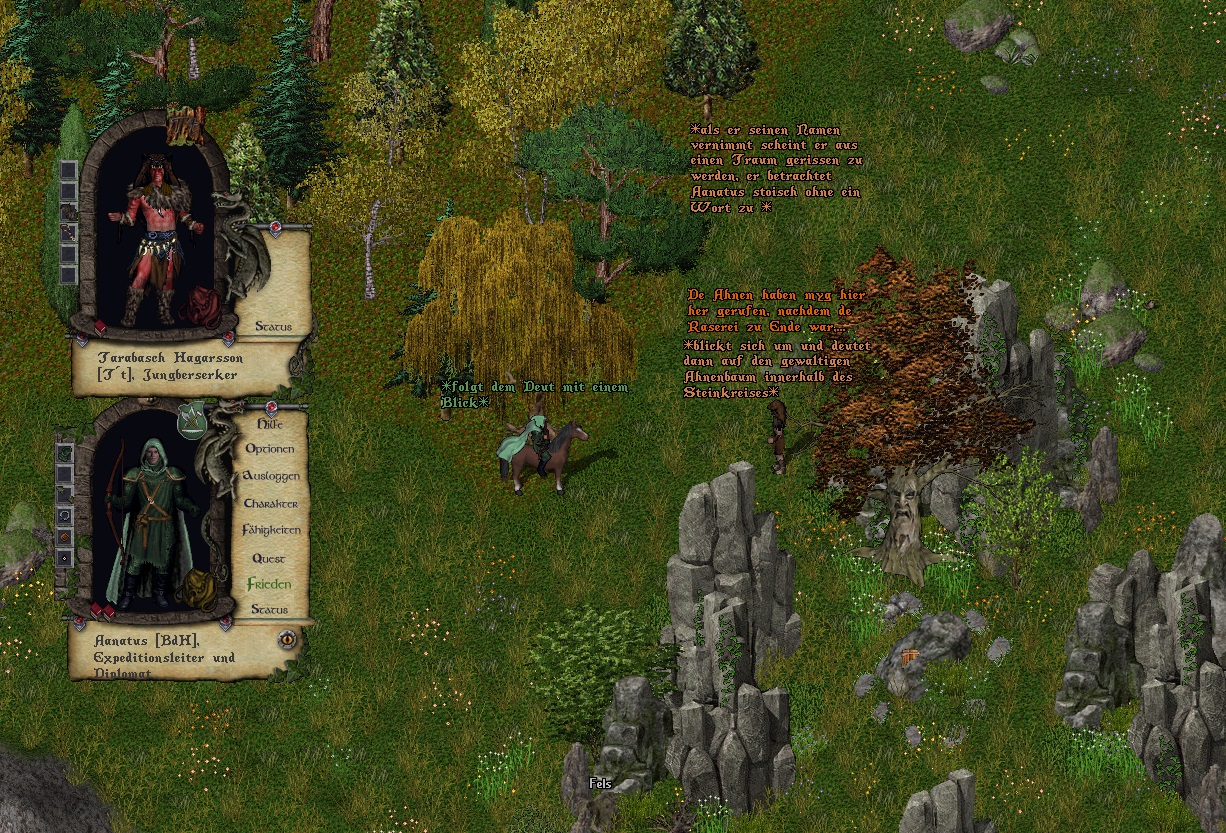 Und dann traf er auch noch Tarabasch an. Im Schlangenhain. Aber in was für einem Zustand? Verschmiert und voller Blut... Mit einem seltsamen Blick in seinen Augen. Wollte wohl seinen Ahnen zuhören oder so. Aanatus blickte besorgt und neugierig zu ihm. Er verstand nicht alles, was da vor sich ging.