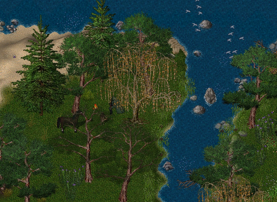 Bald schon musste Aanatus das Tier rasten lassen. Ein entspannter Ritt zu Freunden nach Solgard folgte der Rast. Das Verweilen würde das Pferd als Erholungspause benötigen. Aanatus selbst nutzte die Zeit, um ein paar Solgarder Bekannte zu treffen - ein kleiner Krug Bier ging sich auch noch in Knuts Spelunke aus, dann führte der Weg zurück nach Nebelhafen.