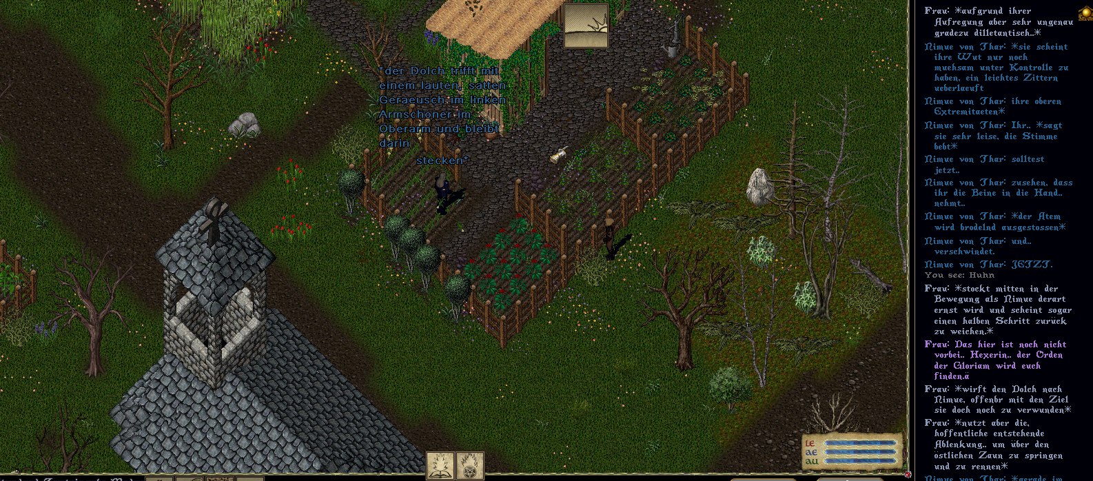 Behende sprang Nimue inzwischen wieder auf die Beine, die vermeintliche Gloriam-Anhaengerin brachte ihre Klinge bereits wieder in Position, ein neuerlicher Angriff stand also kurz bevor.