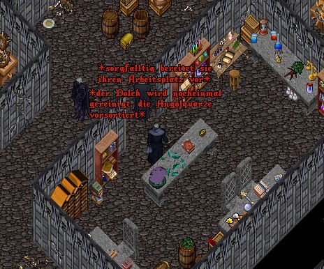 Nach einer weiteren Runde in neuen Gewändern fand sie einen interessanten Zugang, ein Geschäft direkt neben dem neuen Tor hatte geöffnet. Sie betrat den Laden und rechnete damit den Verkäufer in ein Gespräch wickeln zu müssen, doch es schien niemand im Laden zu sein. Den Menschen ihren nutzlosen Plunder abzukaufen entfiel also, dafür gab es durch die Fenster an der Ostseite einiges zu erhaschen in dem Bereich hinter dem neuen Tor.