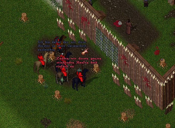 Er nutzte noch das Momentum das ihm gegeben war, und richtete etwas Feuermagie gegen die Palisaden noch ehe der Ork einen Ausfall befehlen konnte und er sich der heranrückenden überwältigenden Anzahl von Orkkriegern entziehen musste. Er hatte nicht damit gerechnet, dass der Ork auf seine Worte eingehen würde. Vor allem nicht dann, wenn alle anderen Orks ihm über die Schulter sahen. Darauf kam es ihm allerdings auch nicht an. Worauf er es vielmehr abzielte war eine klare und unmissverständliche Botschaft an den Stamm: "Spielt ihr in unserem Hof herum, tun wir es in eurem".
