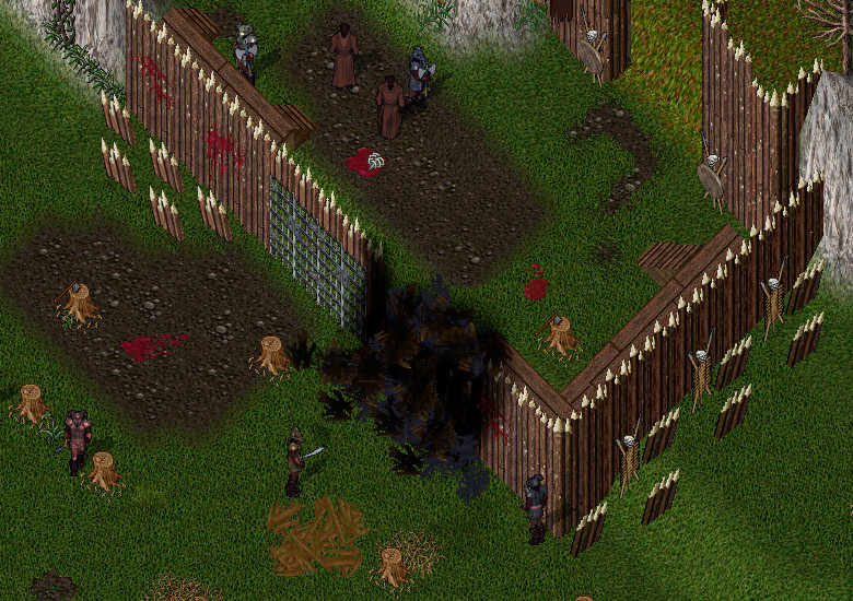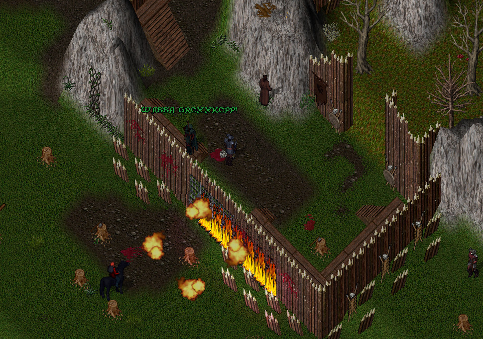 Ja der Rauch, auch Groukh konnten diesen gut erkennen, die Neugier in ihm erweckte das Bedürfnis dem nachzugehen und so machte er sich auf den Weg. Kaum erreicht er die Palisaden des Forts, sah man schon aus der Ferne die Stelle, an der es brannte. Mit wenigen Schritten erreichte er die Stelle und dort wurde ihm klar was hier passierte.