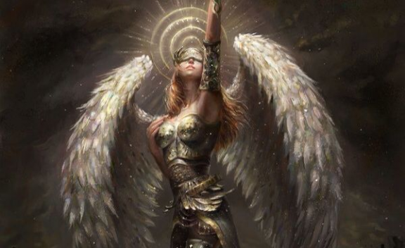 Als er sich wieder auf das Hier und Jetzt konzentrierte, die Schmerzen aushielt und das Tropfen seines Blutes in die Wanne vernahm, sah er ein gleißendes Licht in einer Ecke. Es wurde größer, als würde jemand einen langen Tunnel entlang kommen. Sein zugeschwollenes Auge machte ihm zu Schaffen, doch langsam erkannte er eine Gestalt in dem Licht. Eine Frau in goldener Rüstung, mit rotblondem Haar und zwei weißen Flügeln trat in diesem Licht an seine Seite. Ihr Blick war versteckt hinter einer goldenen Augenmaske und doch hatte Thamion die Gewissheit, sie könne ihn sehen. Zuerst musste er an die Töchter Nyames denken, waren sie ihr doch sehr ähnlich. Doch dann fiel ihm ein Wort aus lang vergangener Zeit ein, ein Name einer Gruppe von Botinnen. Walküren.