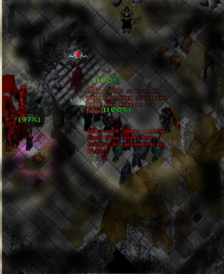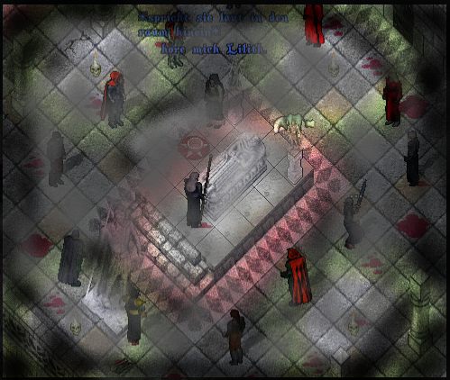 Sie gingen die Gänge entlang, passierten Tore und begutachteten die Kammern. Es wiederholte sich alles.  Erst in der riesigen Halle, welche man nur durch ein magisches Tor passieren konnte, fügte sich eine neue Szenerie hinzu: Hier sah man wie ein dunkles Ritual abgehalten wurde. Wie Blut vergossen wurde und sonstige dazugehörende Handlungen vollzogen wurden. Selbst sein Zauber schien in diesem Moment schwächer zu werden und das Bild flackerte etwas.